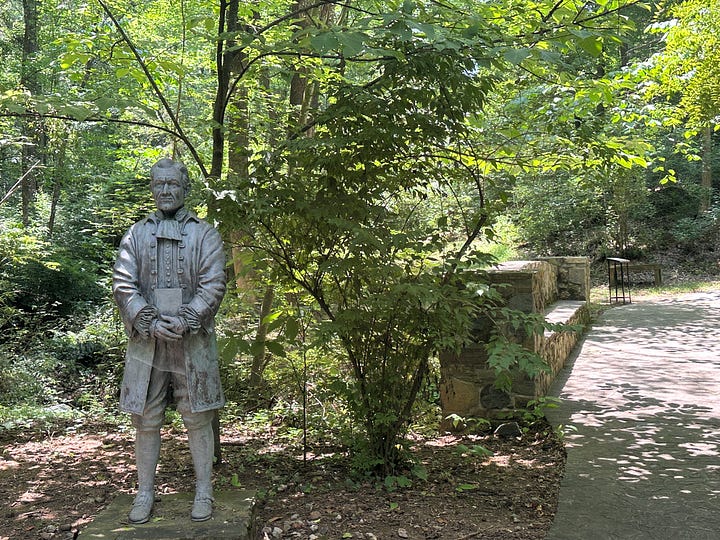 As you walk along a path behind the museum building, an audio tour (on your phone) guides you through the history of the Alexander Homesite, a small plantation. The house was the home of Hezekiah Alexander, his wife, Mary, and their 10 children. He was one of the signers of the Mecklenburg Declaration of Independence. “Enslaved men and women helped build the site and their labors ensured that the farm flourished,” according to the museum, who also makes a point to share their names and stories, although the museum says there’s very limited information about them.