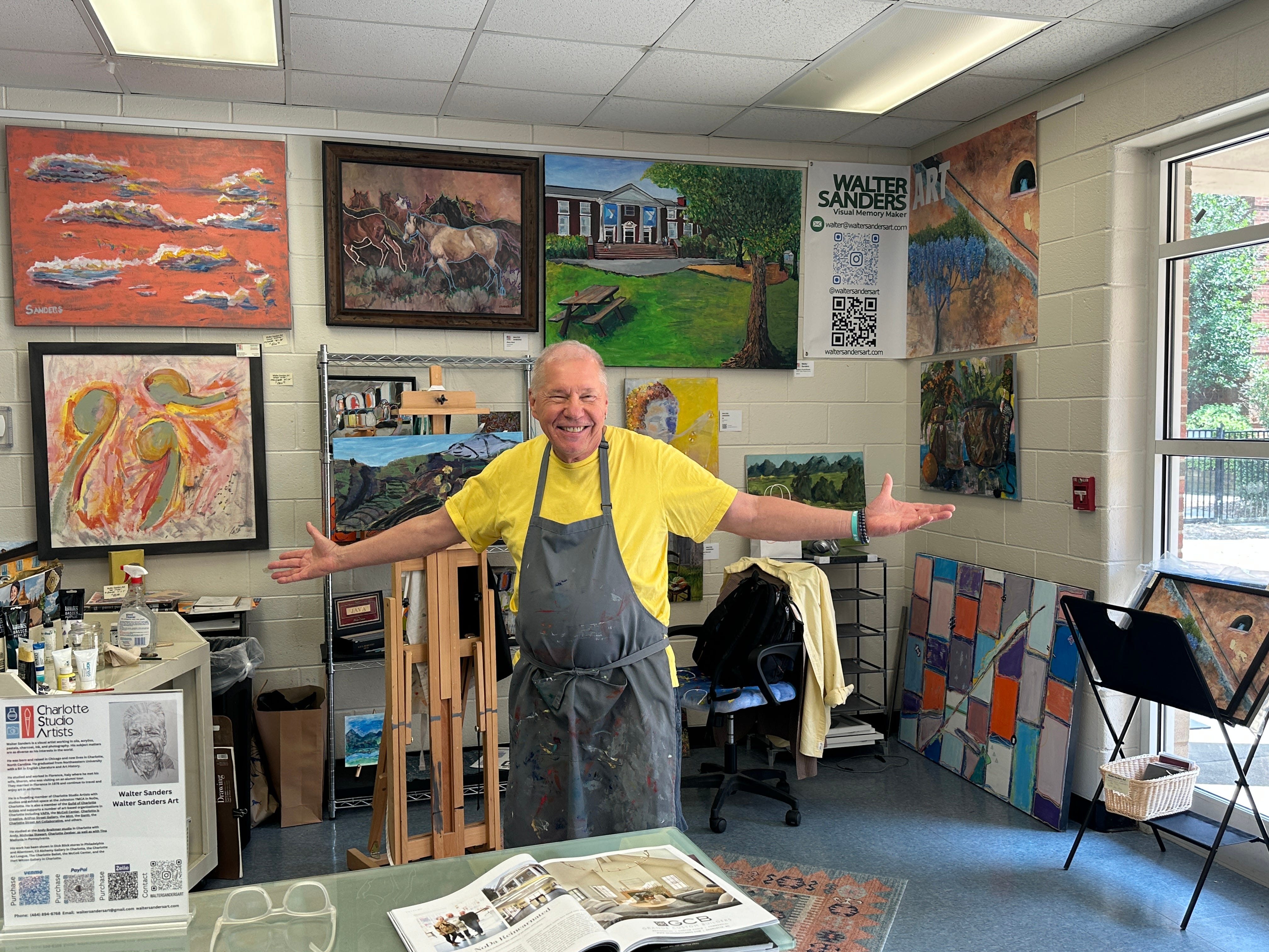 When we were looking for parking, we saw a sign for an art show so we thought we’d check it out and that’s how we learned about Charlotte Studio Artists. The group of local artists has space in the Y in the NoDa neighborhood, where they have studios and display their work. Artist Walter Sanders kindly welcomed us and graciously also guided us through figuring out the parking situation. (FYI: Here and in other areas, signs in the parking lot have QR codes and you pay with your phone and enter your license plate.)